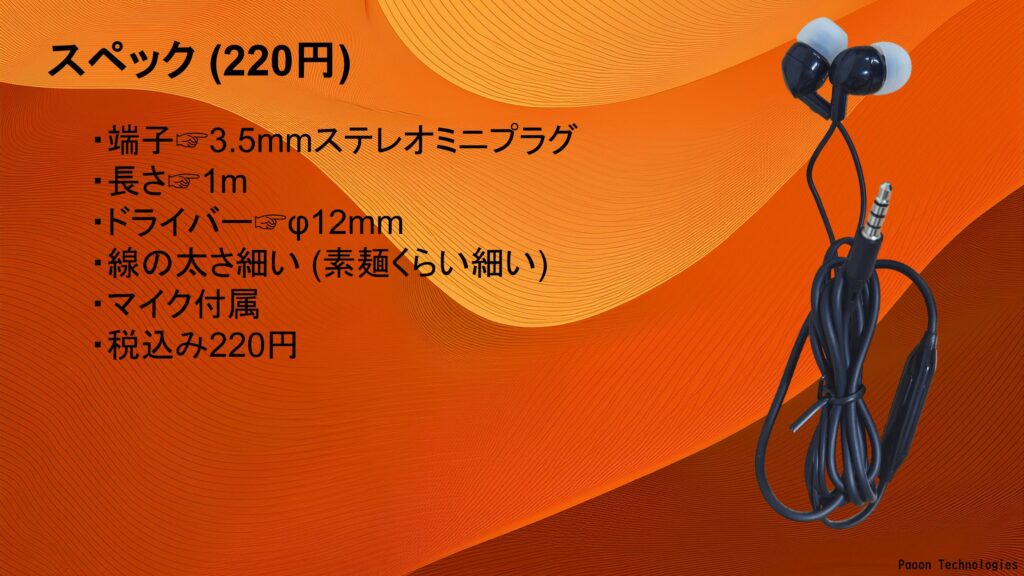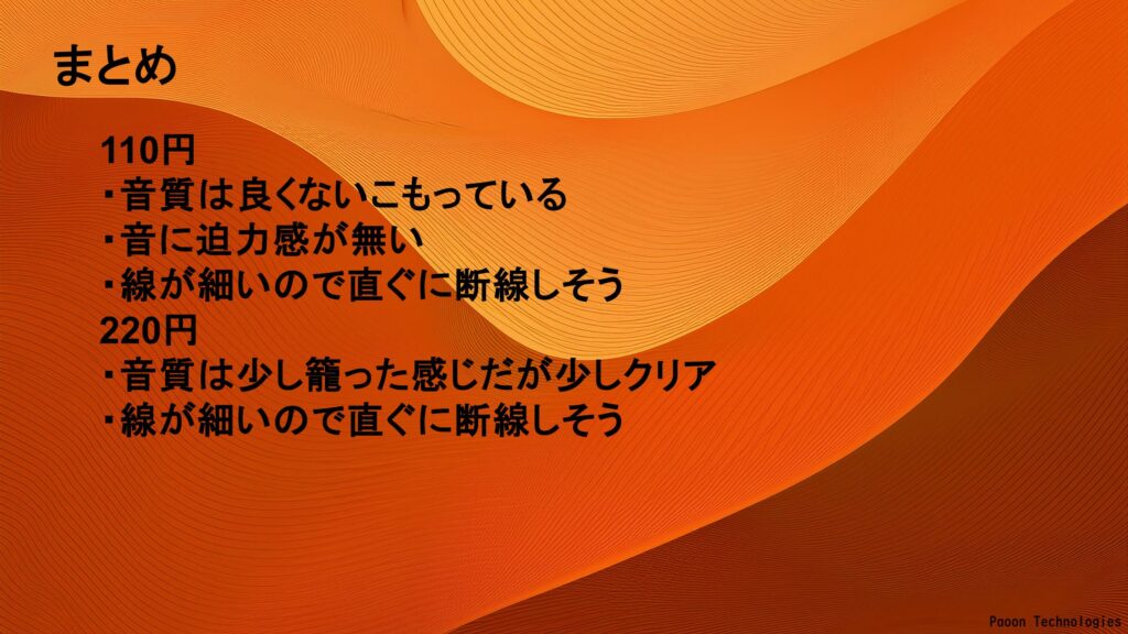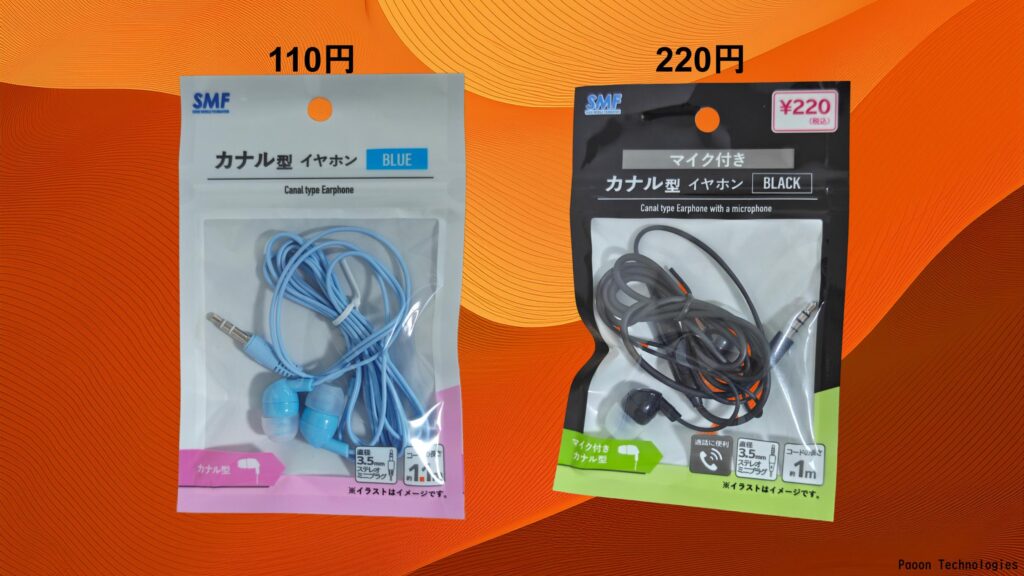 110円の有線イヤホンと220円の有線イヤホンの2つ検証をしていく