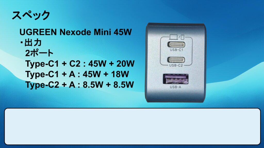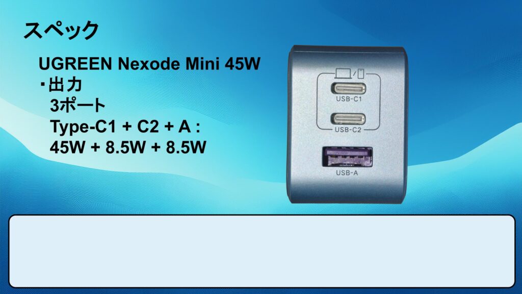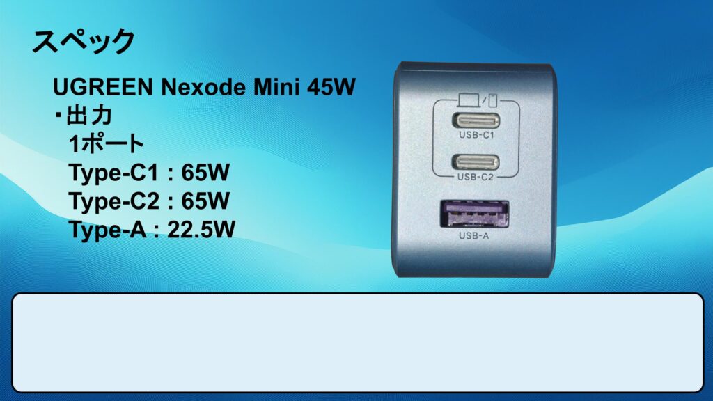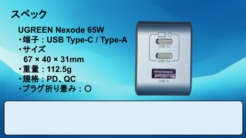 ・1 : UGREEN Nexode 65W リンク : https://amzn.to/3LmllVh