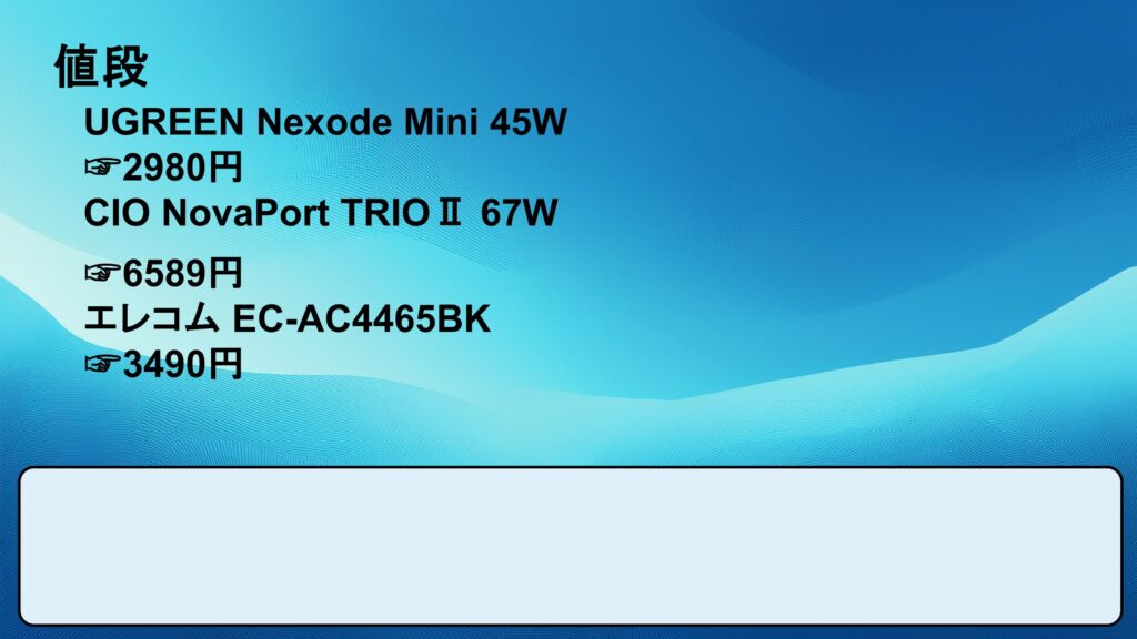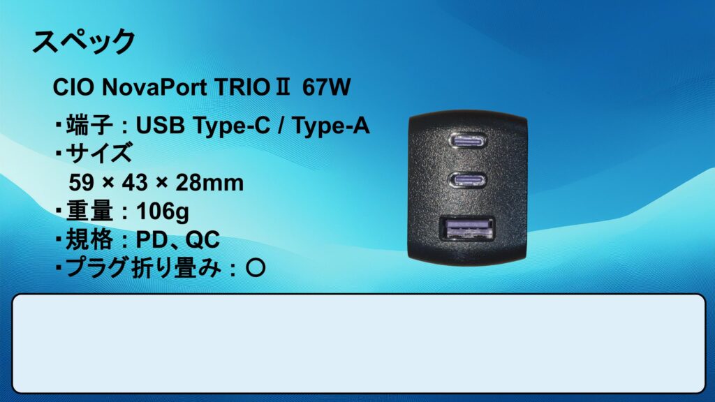 ・2 : CIO NovaPort TRIOⅡ 67W リンク : https://amzn.to/49KBxHM
