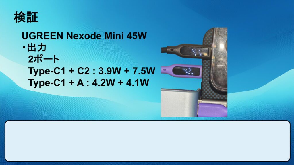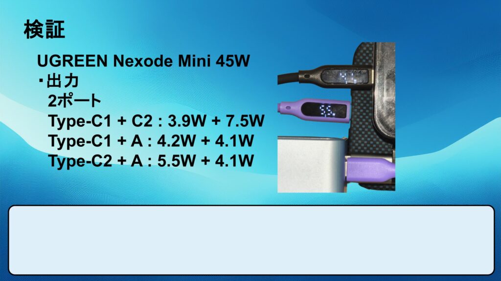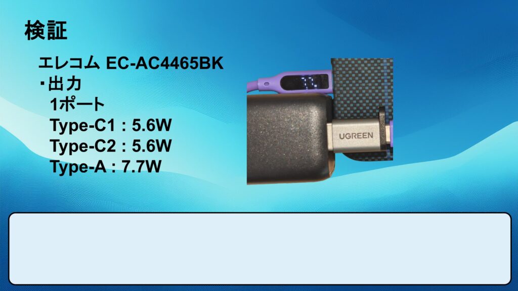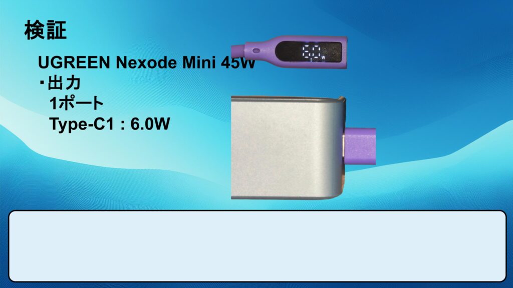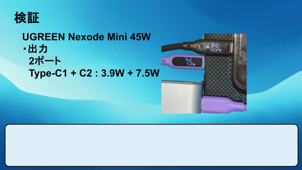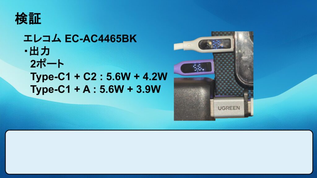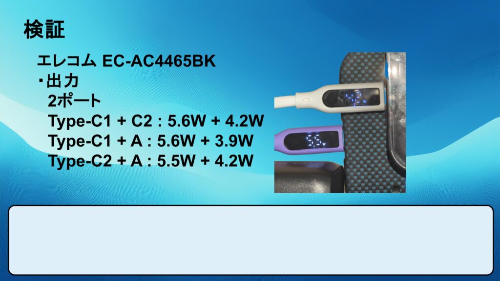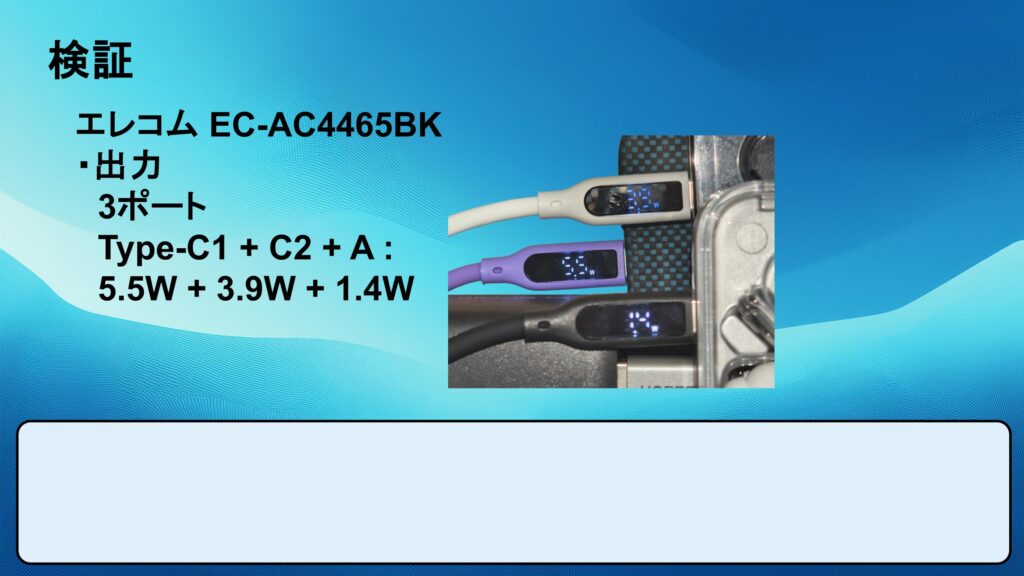 以下のスライドの数値はスマホを充電した計測結果