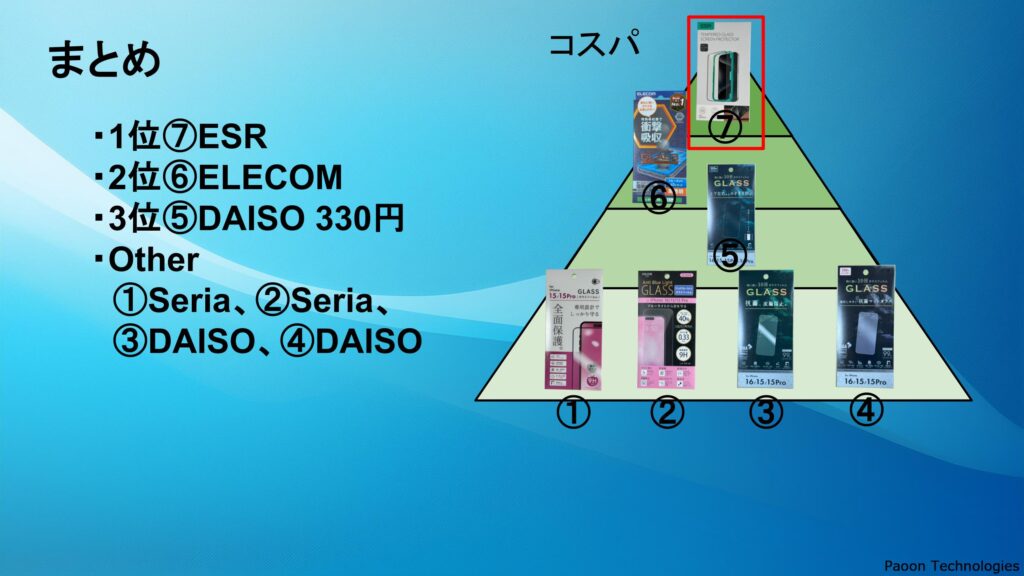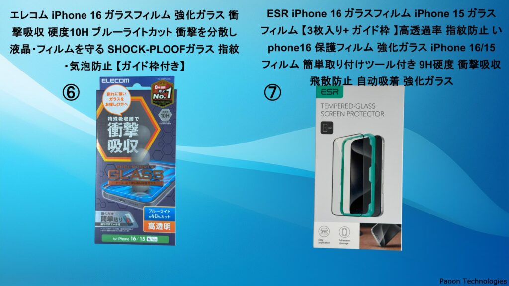 比較対象としてエレコムとESR製のガラスフィルムと比較