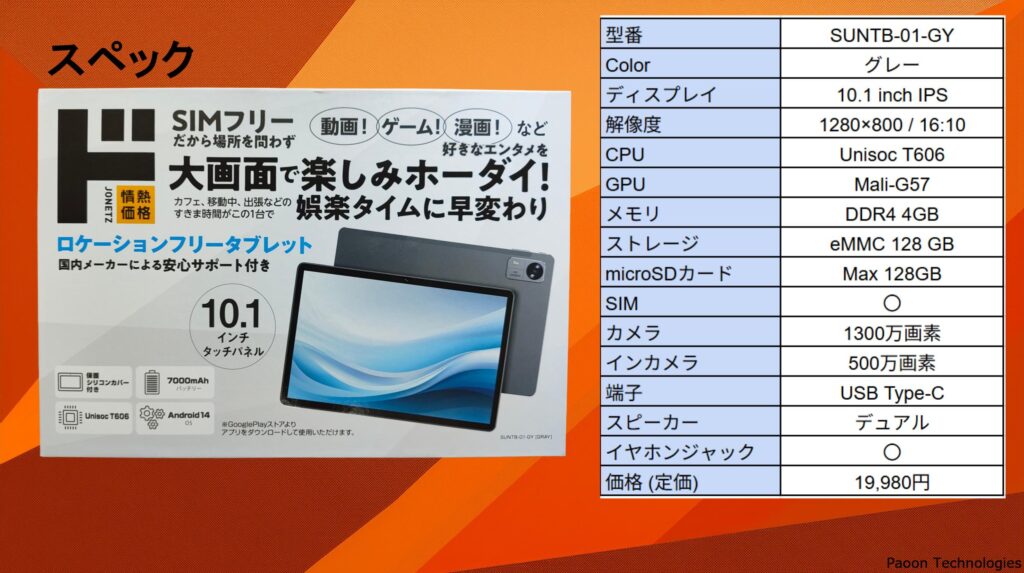ドンキ タブレットSUNTB-01-GY レビュー